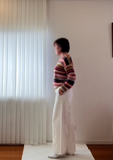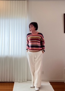 このニットは、ポールスミスのものですが、合わせるボトムスによっては、カントリー風になってしまうもの。